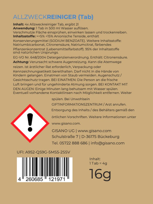 Gisano AQUA - Allzweckreiniger - Inhalt 4 Tabs