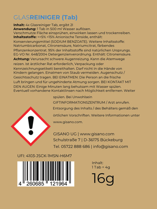 GISANO AQUA - Glasreiniger - Inhalt 4 Tabs